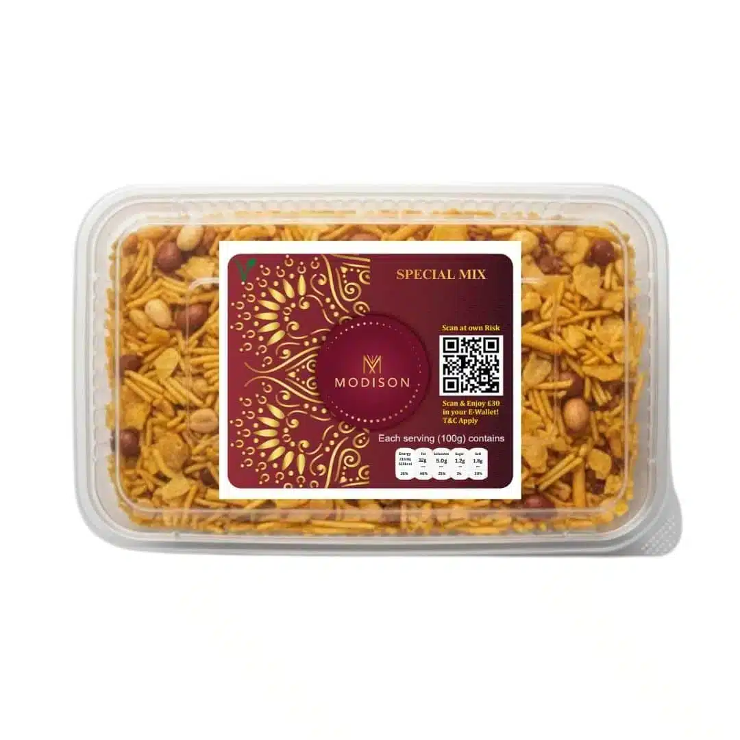 MODISON SPECIAL MIX | Authentic Indian Snack | Vegetarian | Exported from India | UK Approved Premium quality SPECIAL MIX from MODISON – India’s trusted exporter.100% Vegetarian, made with traditional Indian ingredients.Sealed packaging to preserve freshness during export.Imported & distributed in the UK by PRS Imports Ltd, Leicester.Long shelf life | Store in a cool, dry place | Allergen info on pack.